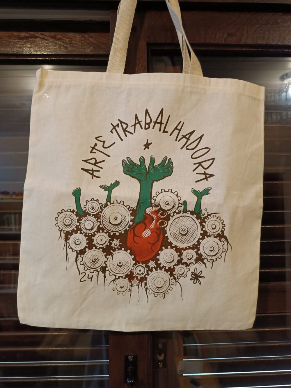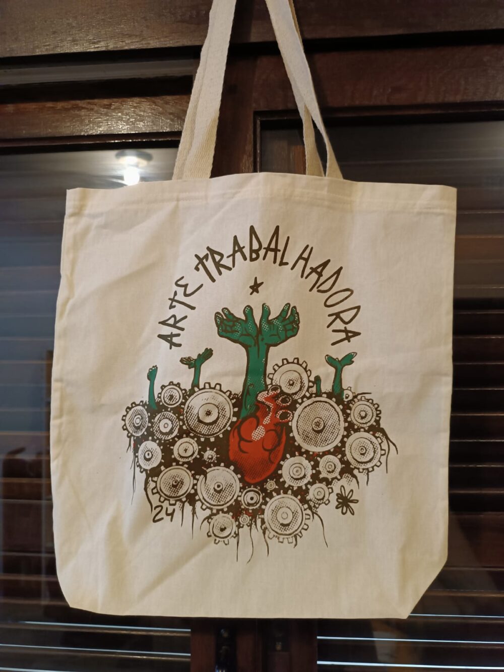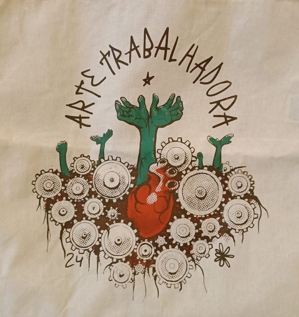 Sacola de Algodão, 38x40cm, estampa original Arte Trabalhadora impressa em serigrafia em nosso atelier.